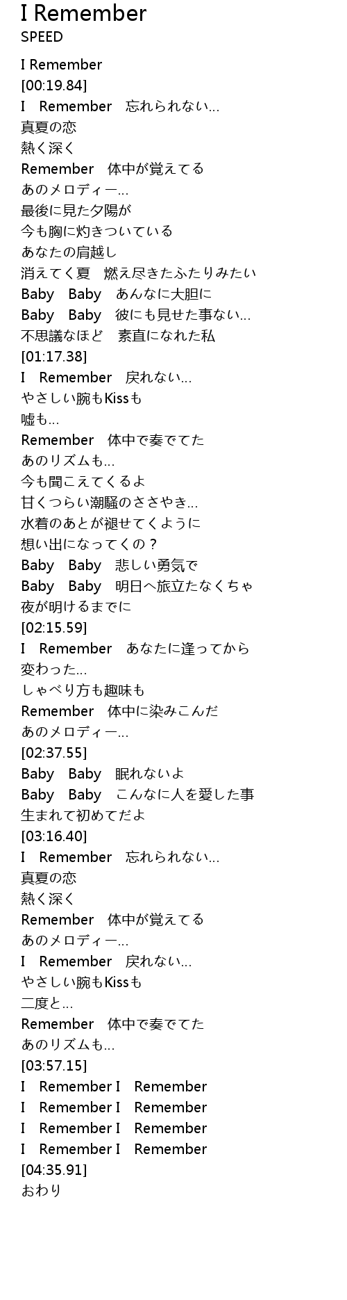 [01:05.04] Baby Baby 彼にも見せた事ない…