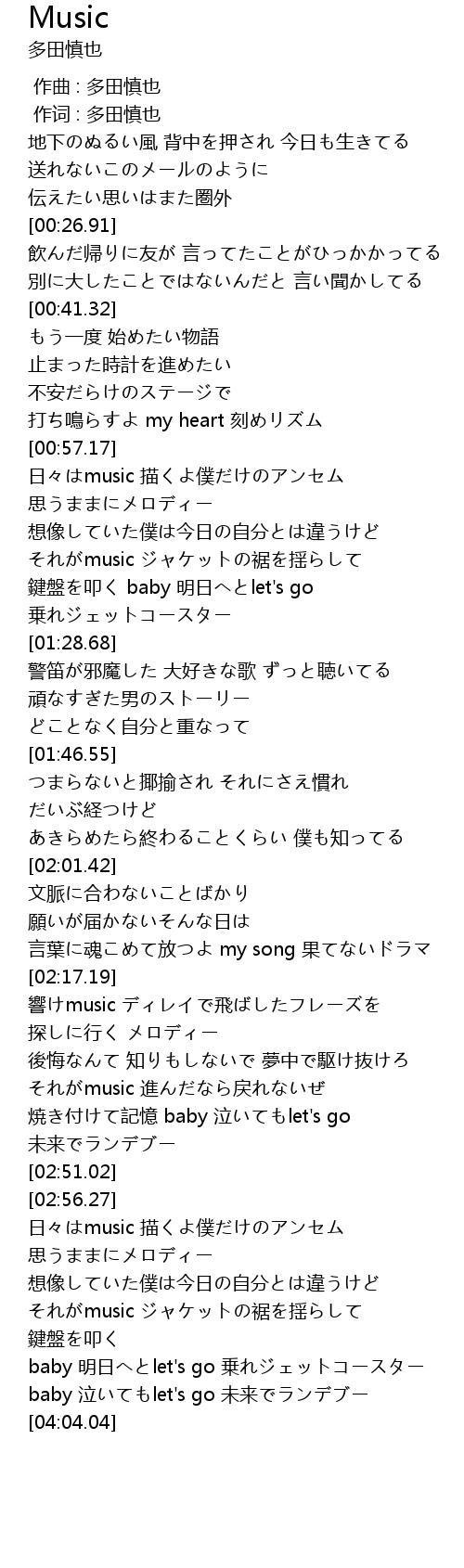 | [00:01.00] | 作词 : 多田慎也 |