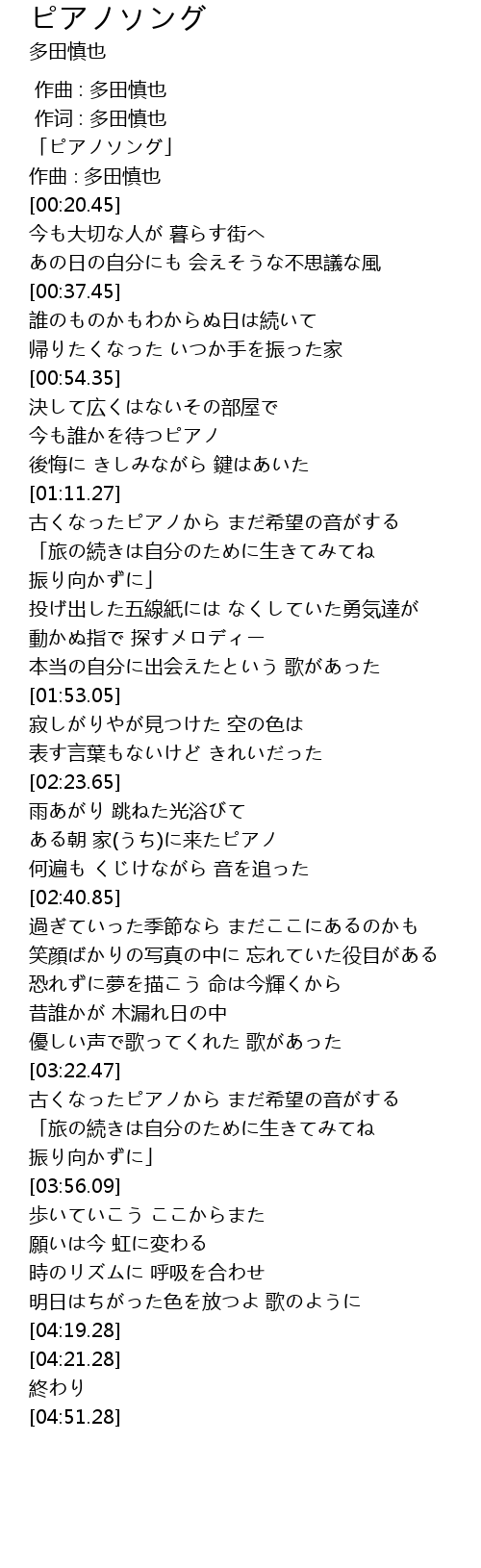 | [03:39.45] | 古くなったピアノから まだ希望の音がする |