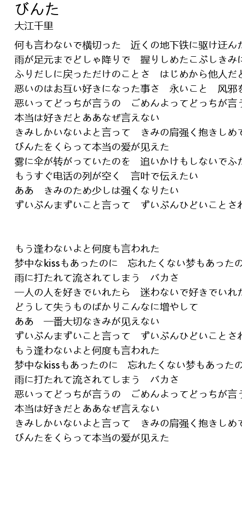 | 恶いのはお互い好きになった事さ 永いこと 风邪をひいたと思えばいい | |