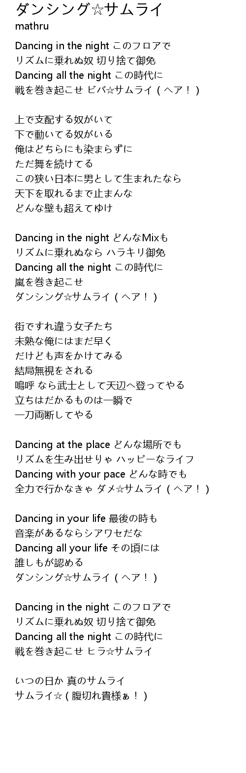 | 歌曲 | ダンシング☆サムライ |