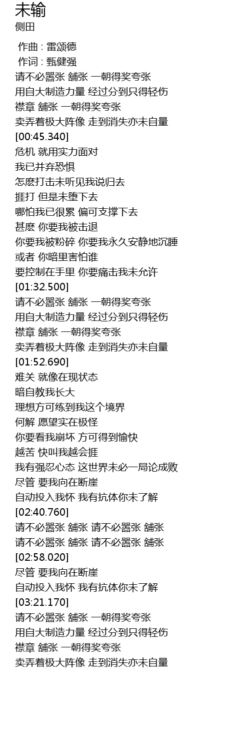 | 歌曲 | 未输 |