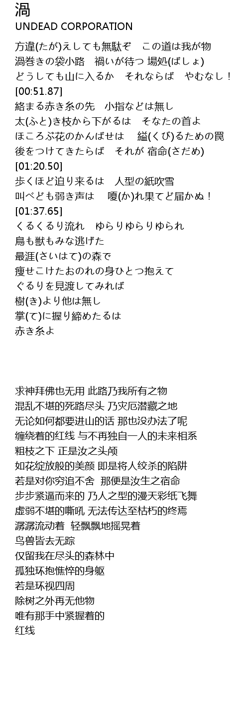 | [00:31.14] | 渦巻きの袋小路 禍いが待つ 場処(ばしょ) |