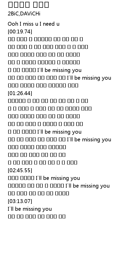 | [02:11.52] | 오늘 밤이 지나면 영영 잊을지 몰라 I`ll be missing you |