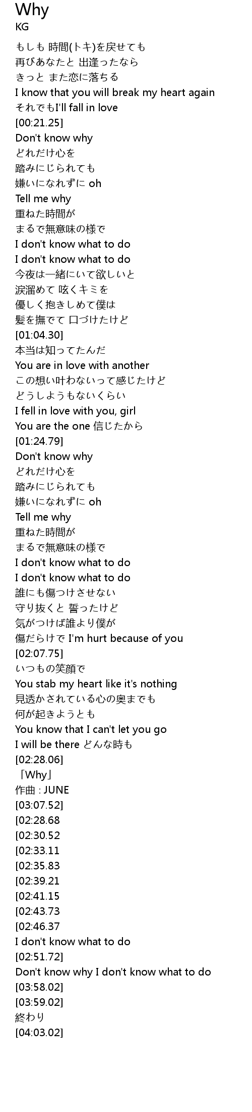 | [03:31.19][02:46.37] | I don' t know what to do |