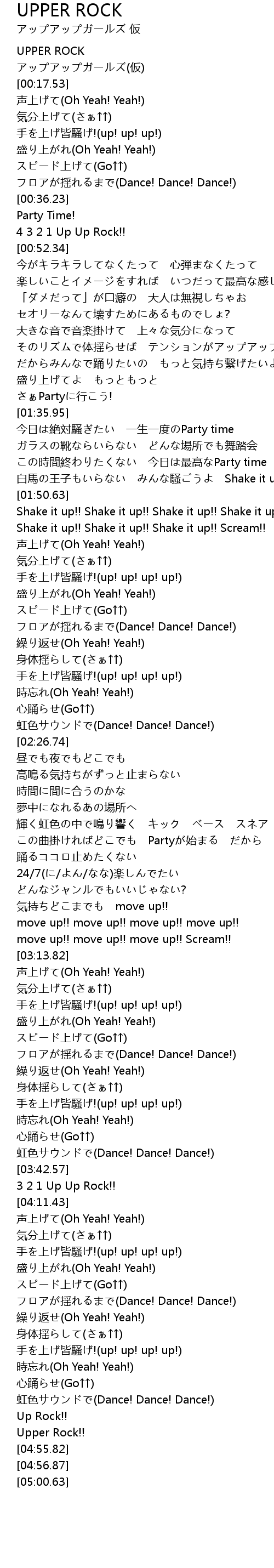 | [04:29.52] | 手を上げ皆騒げ!(up! up! up! up!) |