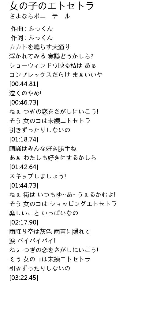 | [03:03.61] | そう 女のコは未練エトセトラ |