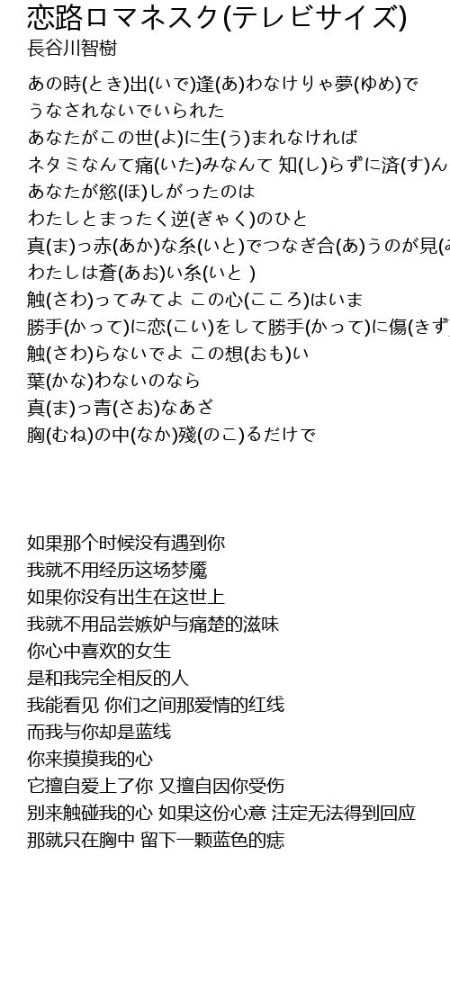 | [00:46] | 真(ま)っ赤(あか)な糸(いと)でつなぎ合(あ)うのが見(み)える… |