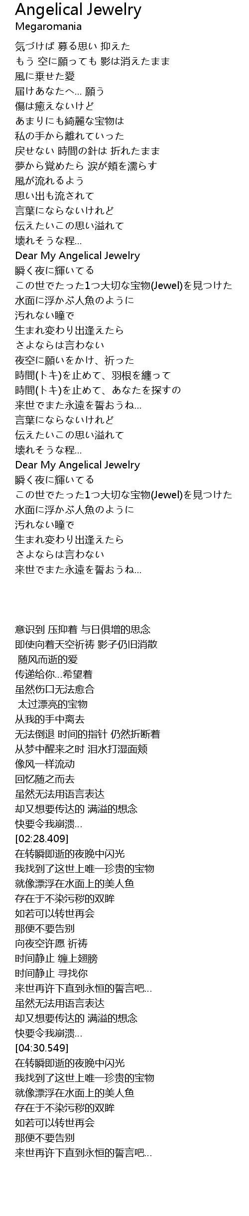 | [02:36.857] | この世でたった1つ大切な宝物(Jewel)を見つけた |