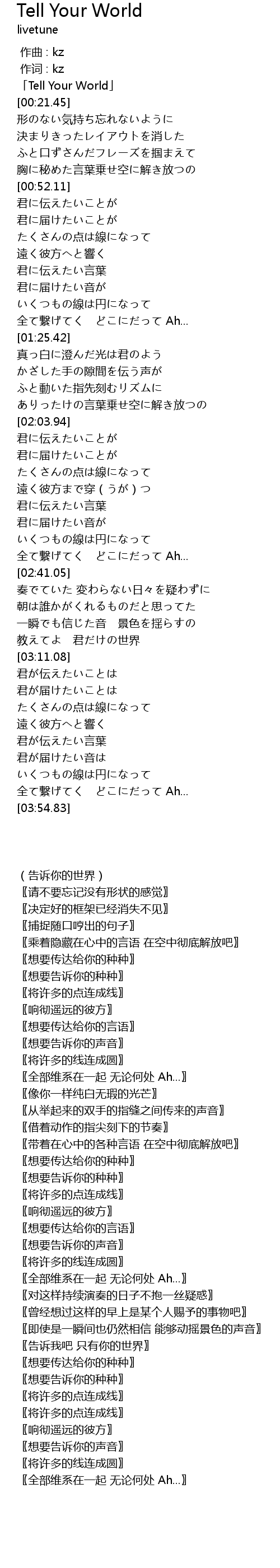 | [03:01.97] | 教えてよ 君だけの世界 |