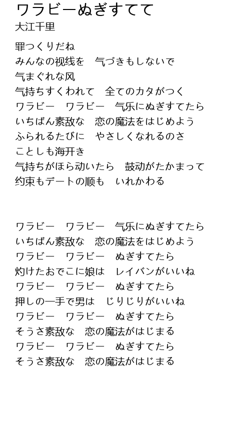 ワラビー ワラビー 气乐にぬぎすてたら |