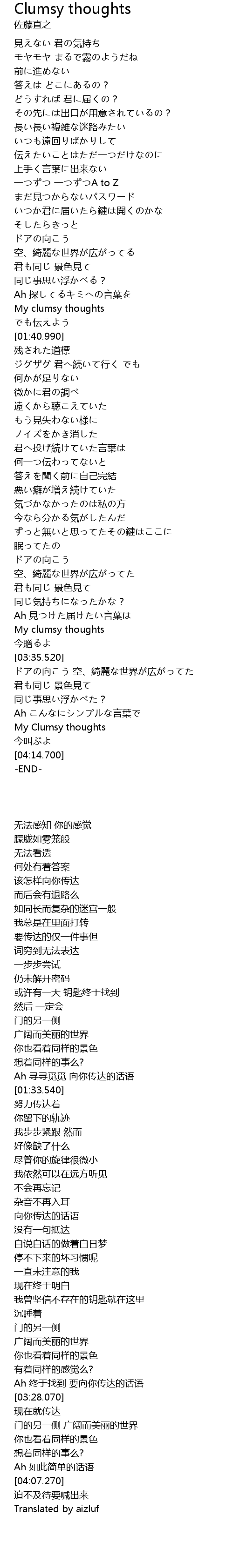 | [04:07.270] | My Clumsy thoughts |