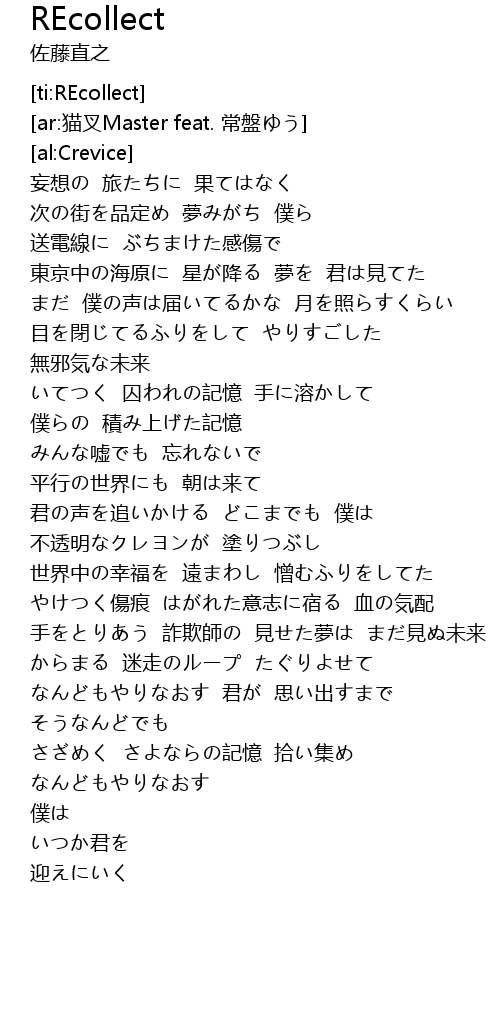 | [04:20.75] | さざめく さよならの記憶 拾い集め |