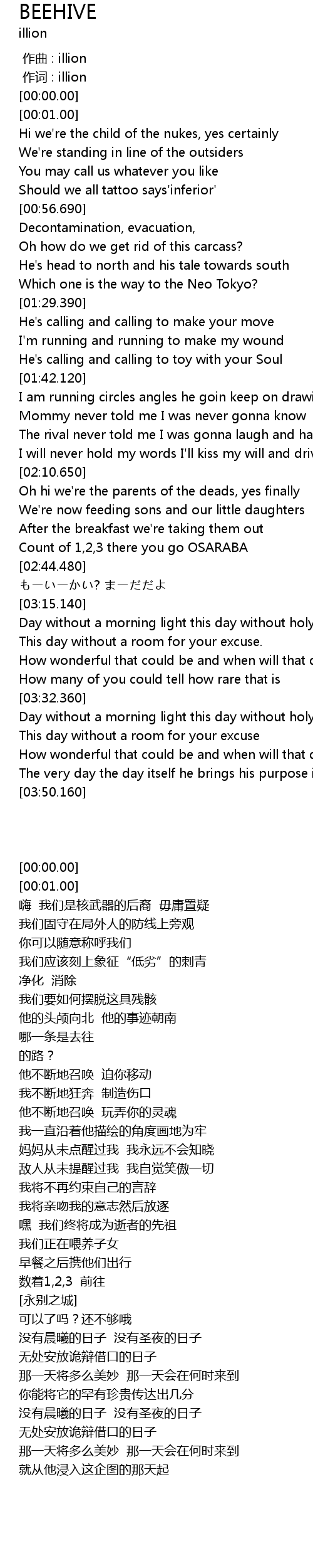 | [00:00.00] | 作词 : illion |