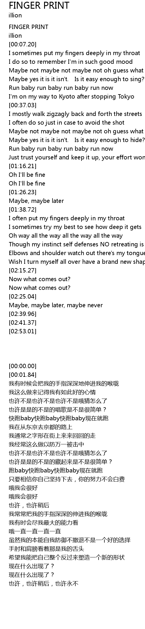 | [00:00.00] | FINGER PRINT |