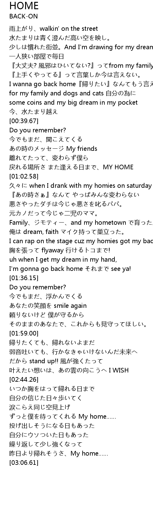 | [03:03.62] | 昨日より帰れそうさ、My home…… |