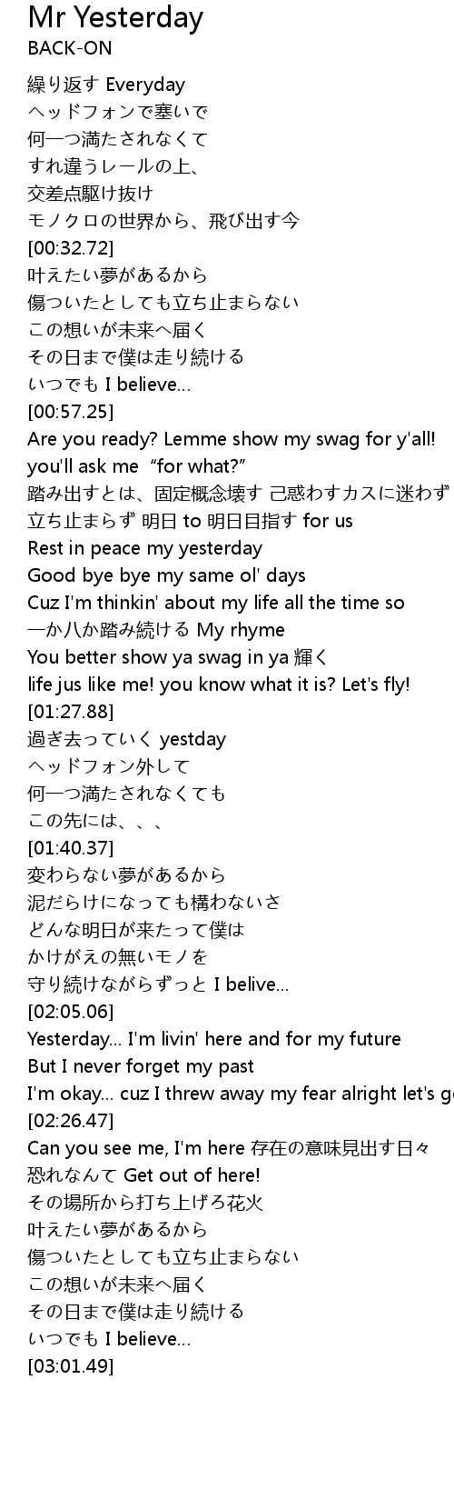| [02:12.36] | Yesterday... I' m livin' here and for my future |