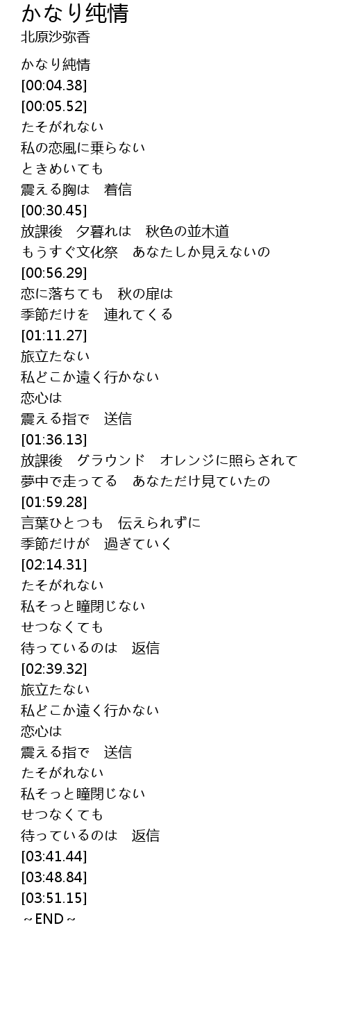 | [00:46.29] | もうすぐ文化祭 あなたしか見えないの |