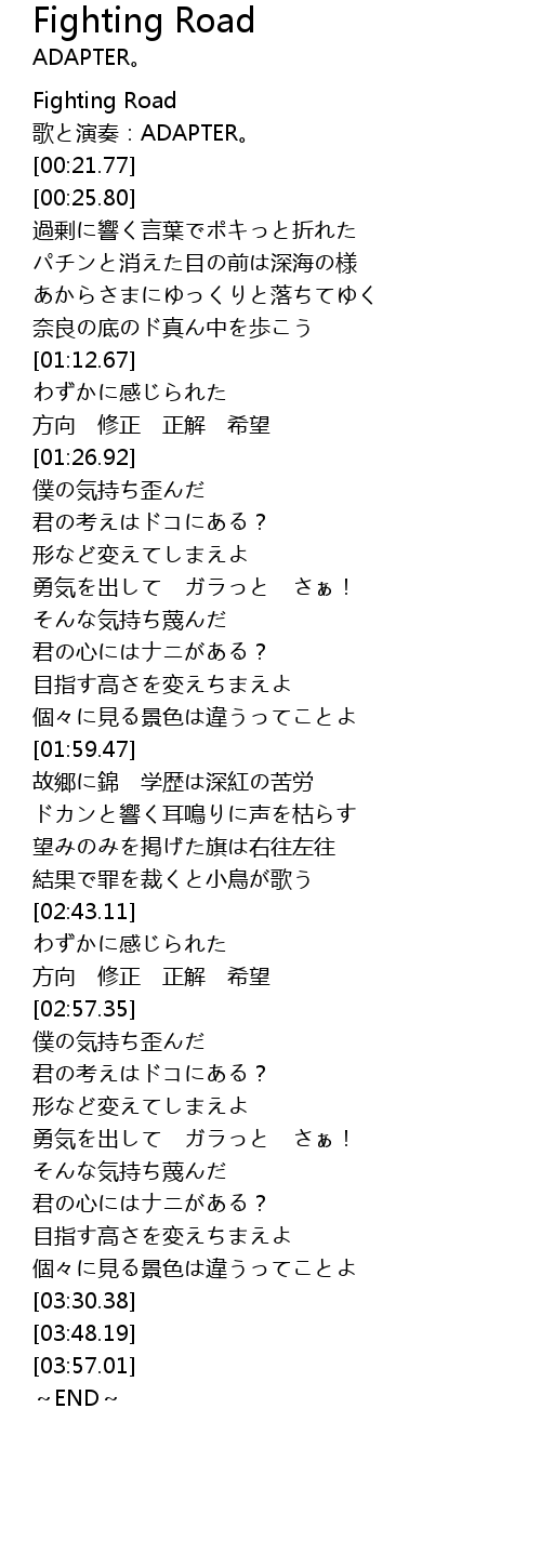 | [00:16.93] | 歌と演奏:ADAPTER。 |