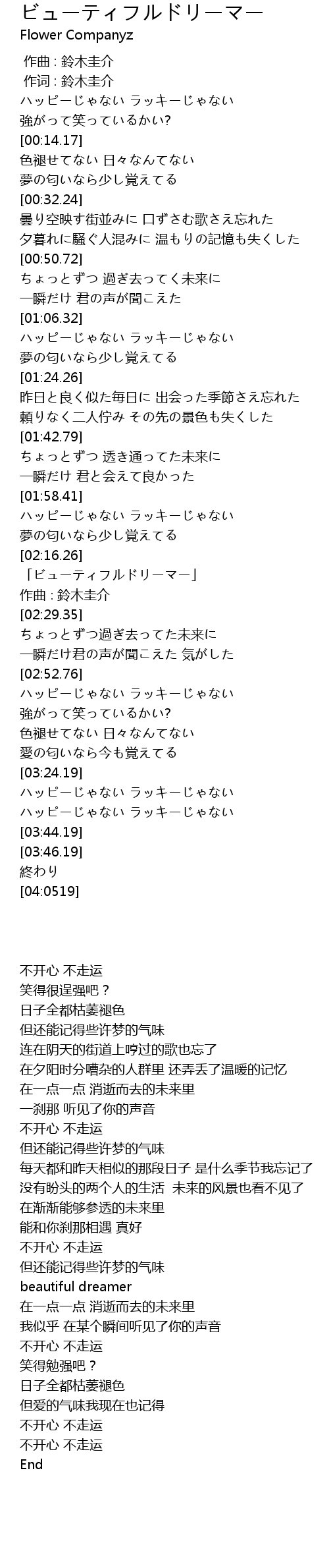 | [02:18.35] | 「ビューティフルドリーマー」 |