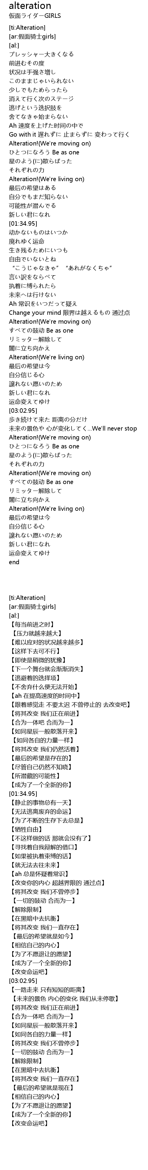 | [03:59.17] | Alteration!(We're living on) |