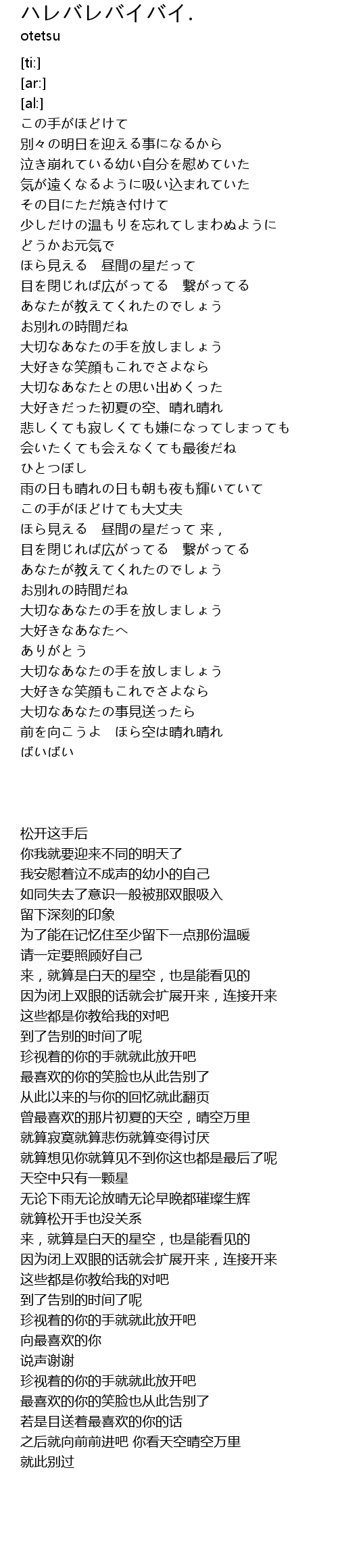 | 歌曲 | ハレバレバイバイ. |