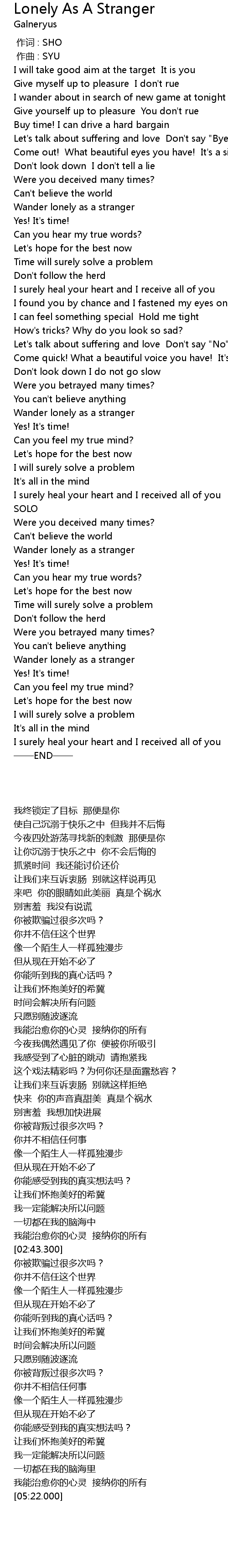 | [04:43.000] | 像一个陌生人一样孤独漫步 |