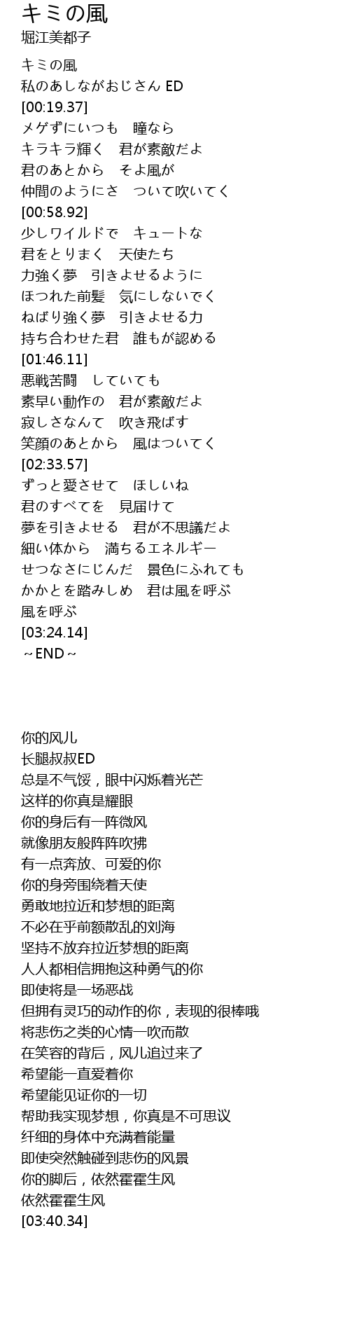 | [03:10.89] | かかとを踏みしめ 君は風を呼ぶ |