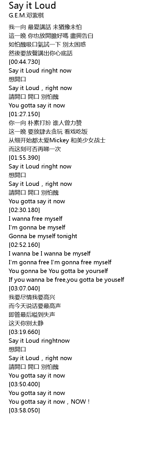 | [00:40.380] | 然後要放聲講出你心底話 |