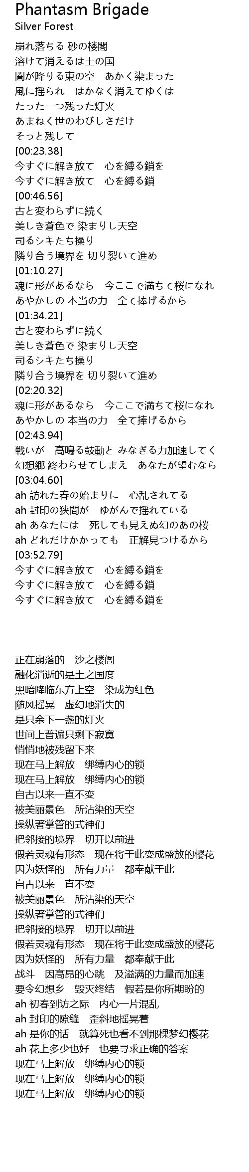 | [02:54.70] | 幻想郷 終わらせてしまえ あなたが望むなら |