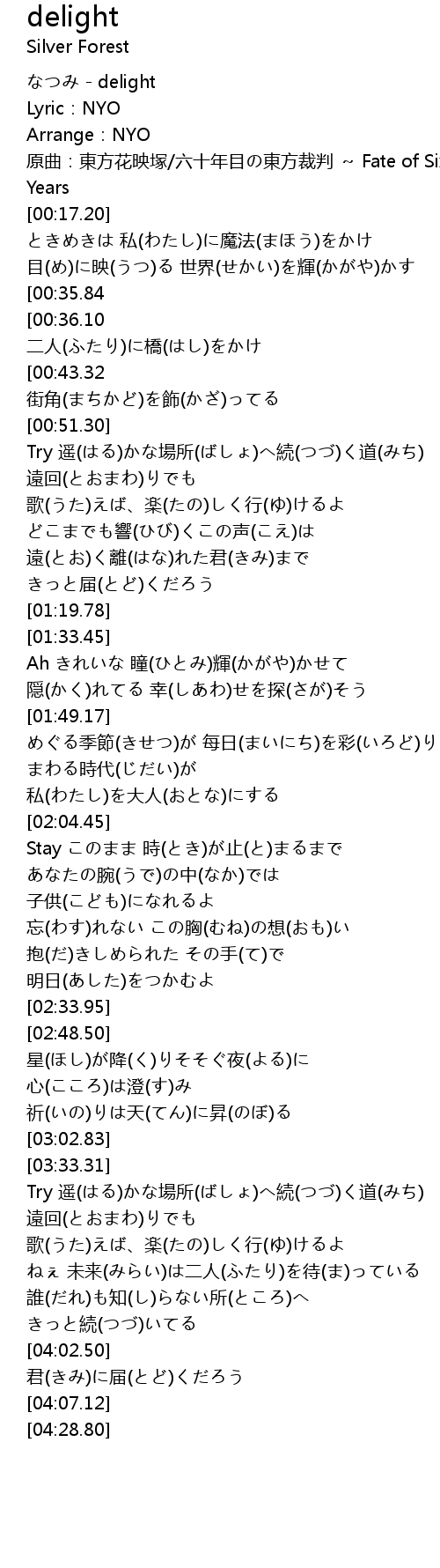 | [00:00.00] | なつみ - delight |