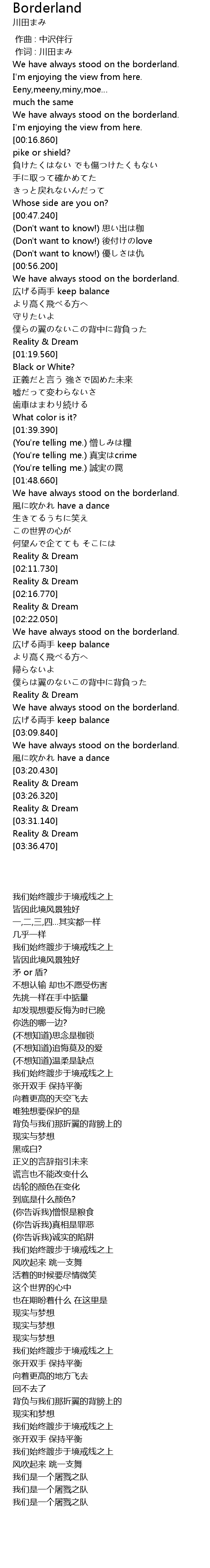 | [02:43.760] | 我们始终踱步于境戒线之上 |