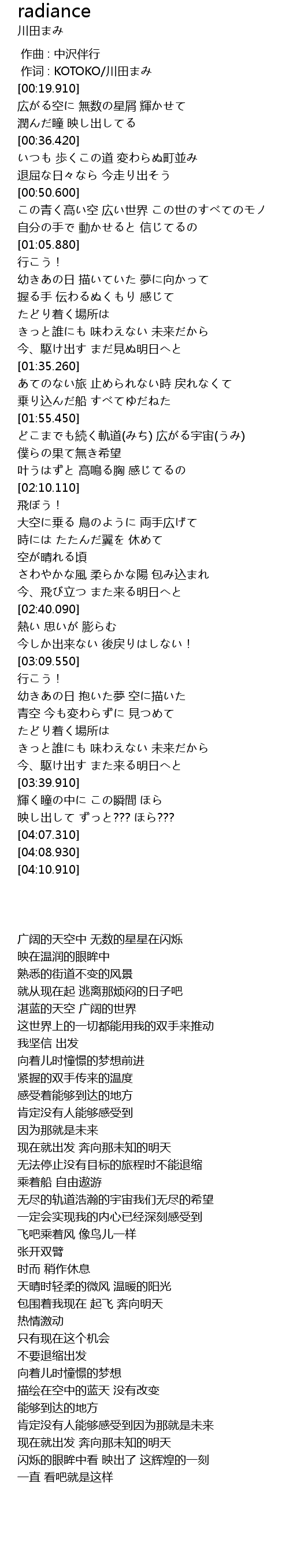 | 歌曲 | radiance |