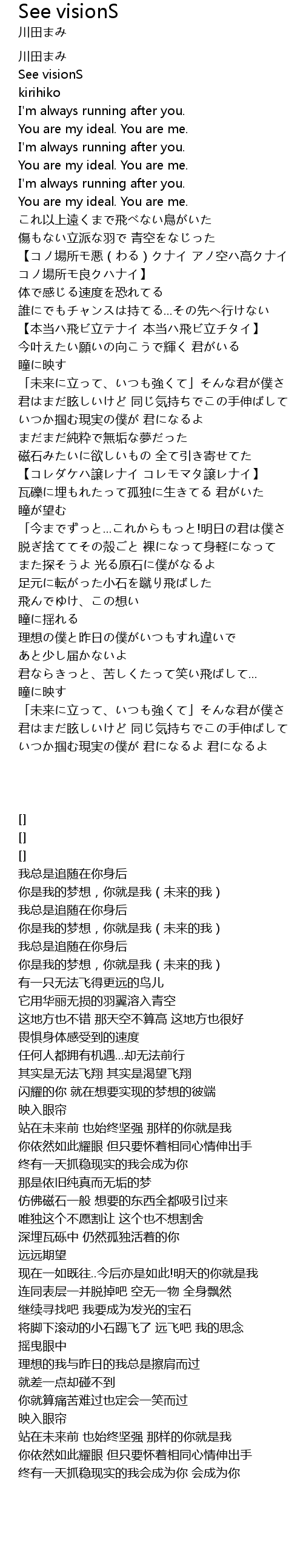 | [00:06.12] | 你是我的梦想,你就是我(未来的我) |