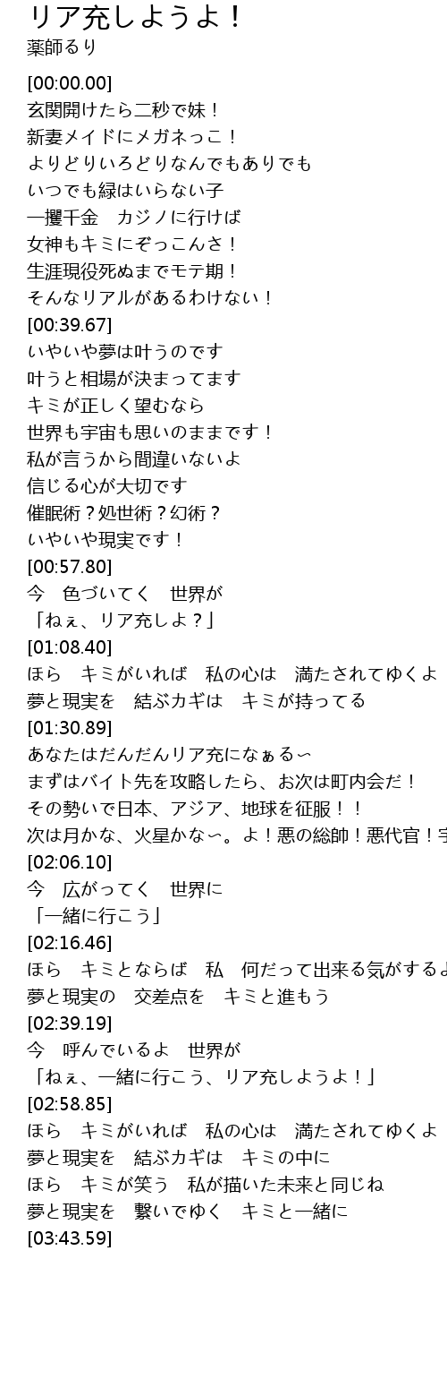 | [01:51.72] | あなたはだんだんリア充になぁる〜 |