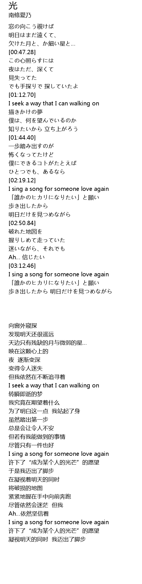 | [03:19.97] | 许下了“成为某个人的光芒”的愿望 |