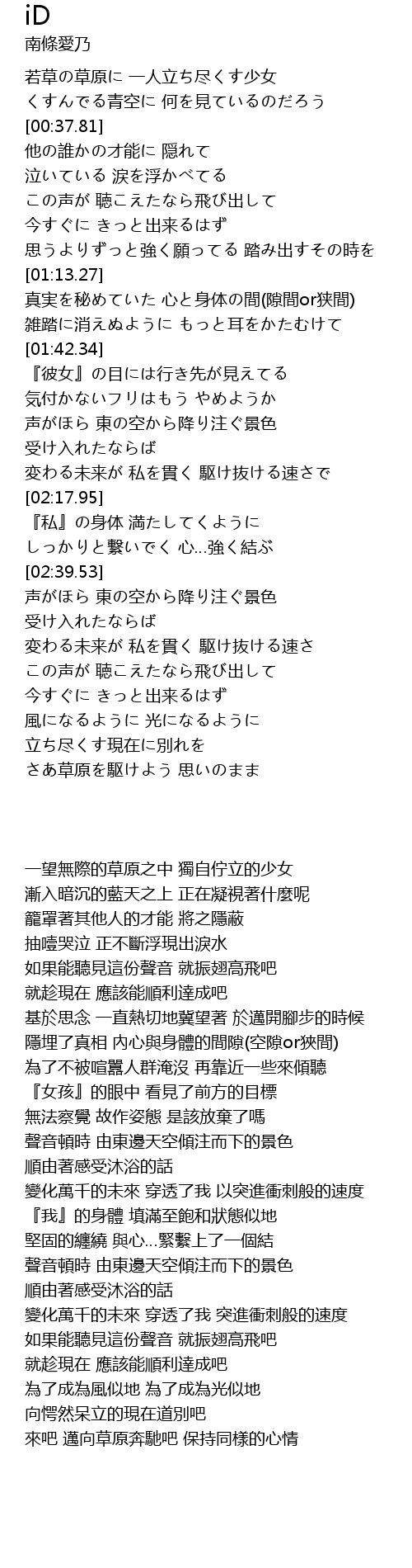 | [00:16.80] | 一望無際的草原之中 獨自佇立的少女 |