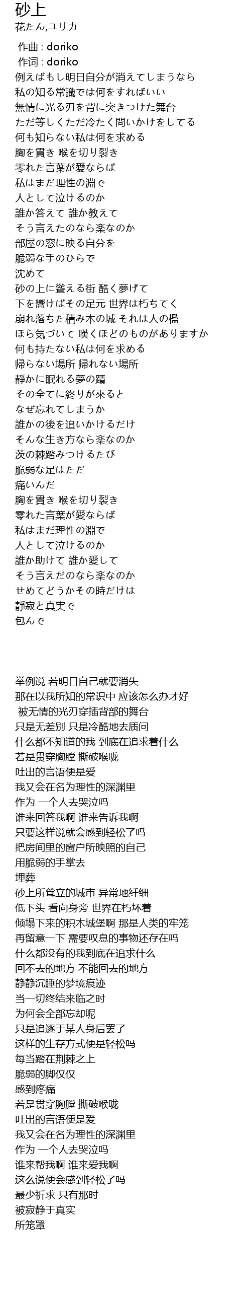 | [01:55.85] | 砂の上に聳える街 酷く夢げて |