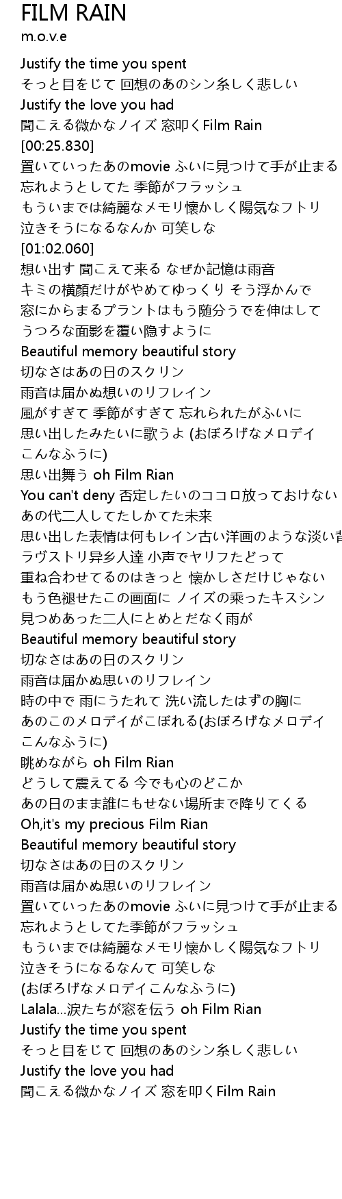 | [02:09.340] | 思い出舞う oh Film Rian |