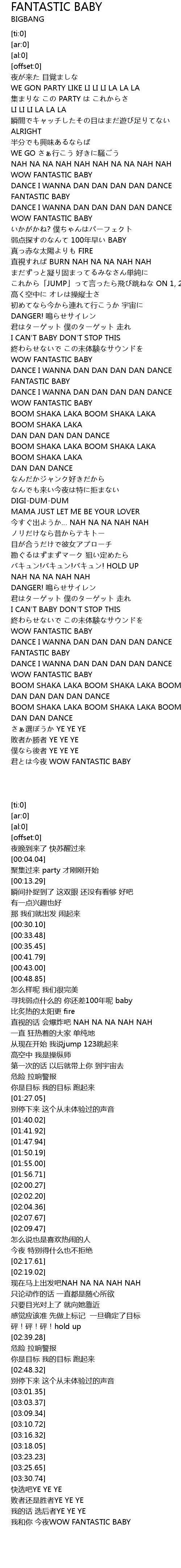 | [03:43.71] | jūn jīn yè WOW FANTASTIC BABY |