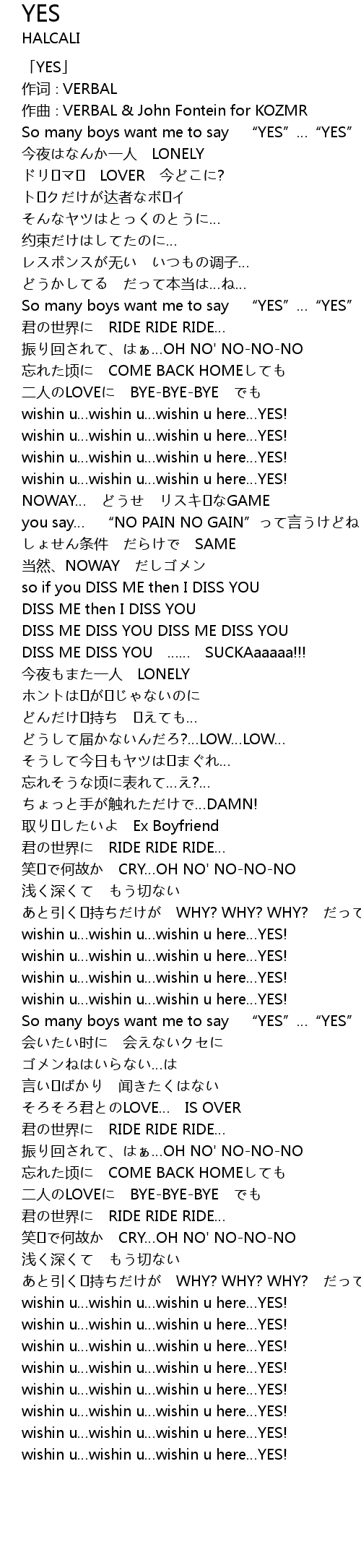 | [01:14.92] | So many boys want me to say “YES”…“YES”…“YES”… |