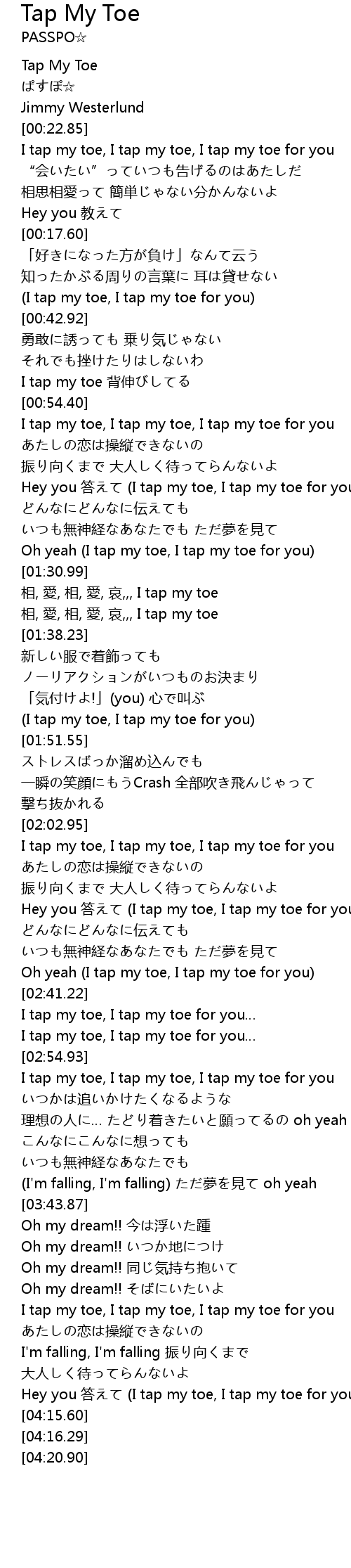 | [03:58.23] | I tap my toe, I tap my toe, I tap my toe for you |