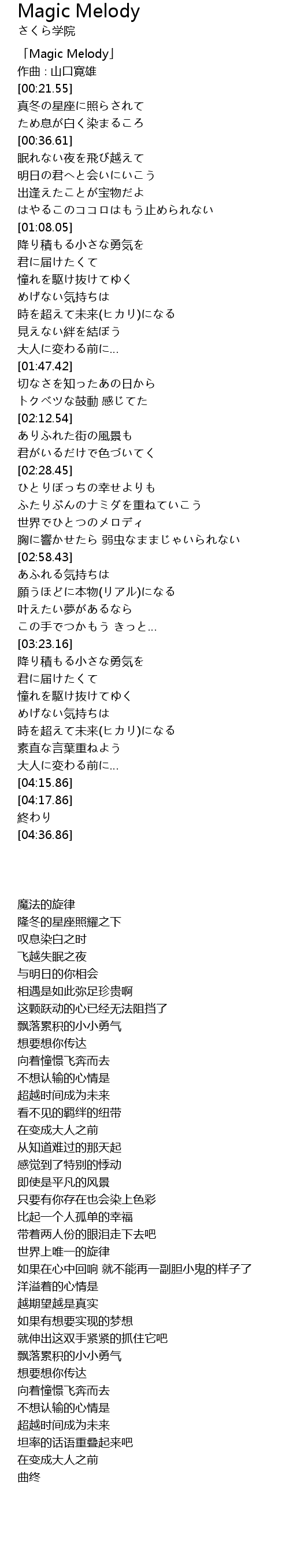 | [00:00.55] | 「Magic Melody」 |