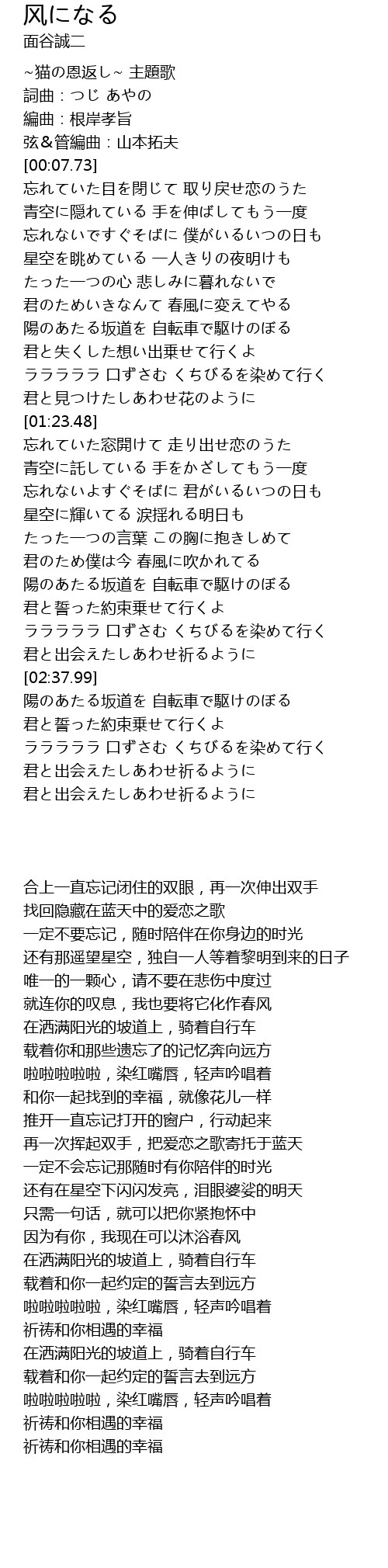 | [00:03.73] | ~猫の恩返し~ 主題歌 |