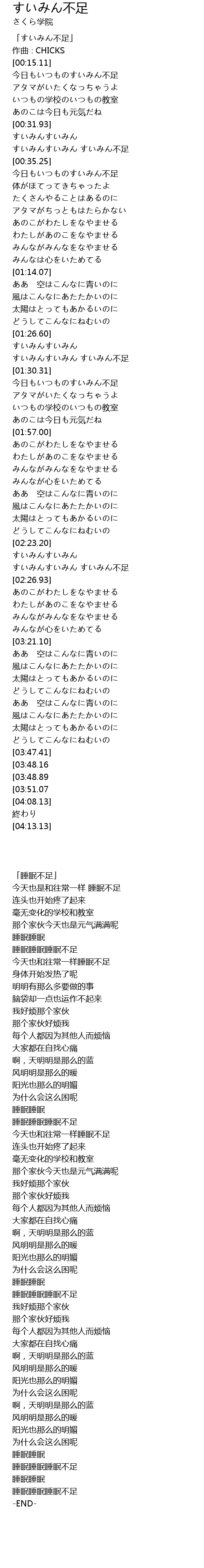 | [02:24.69] | すいみんすいみん すいみん不足 |