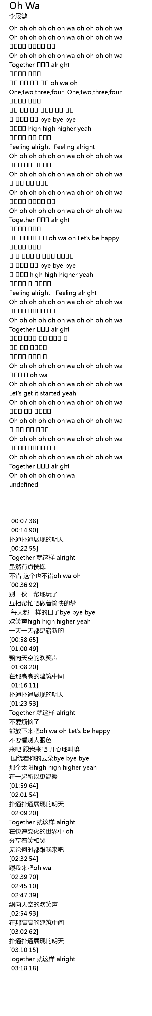 | [00:07.38] | Oh oh oh oh oh oh wa oh oh oh oh wa |