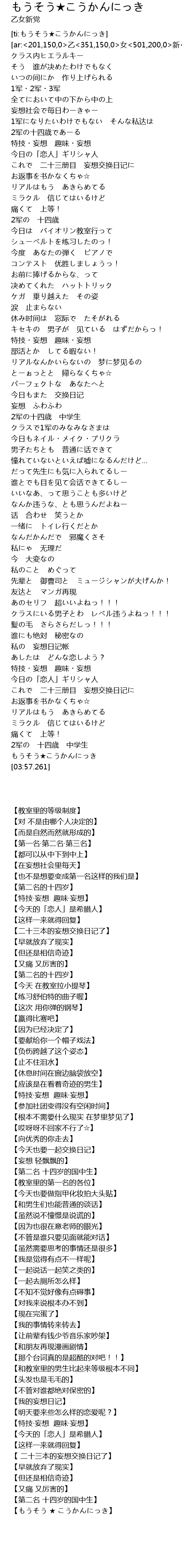 | [03:55.57] | 【もうそう ★ こうかんにっき】 |