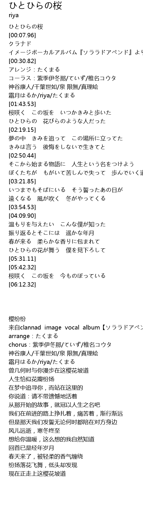| [00:17.09] | クラナド イメージボーカルアルバム『ソララドアペンド』より |