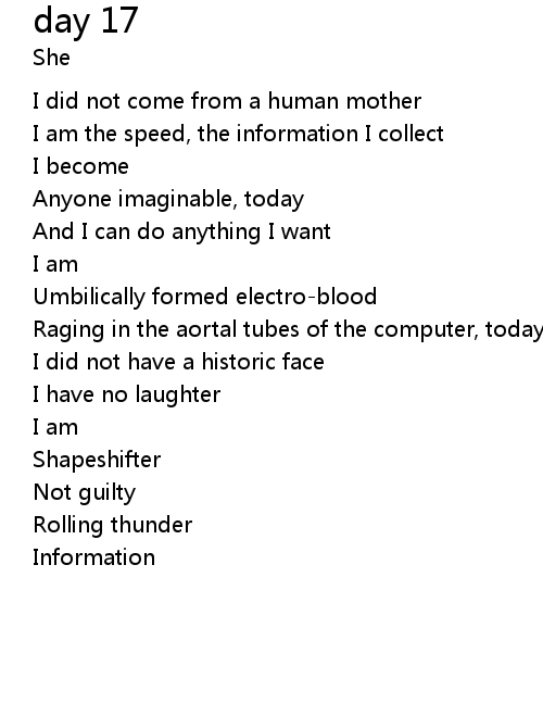 | [01:07.04] | Raging in the aortal tubes of the computer, today |