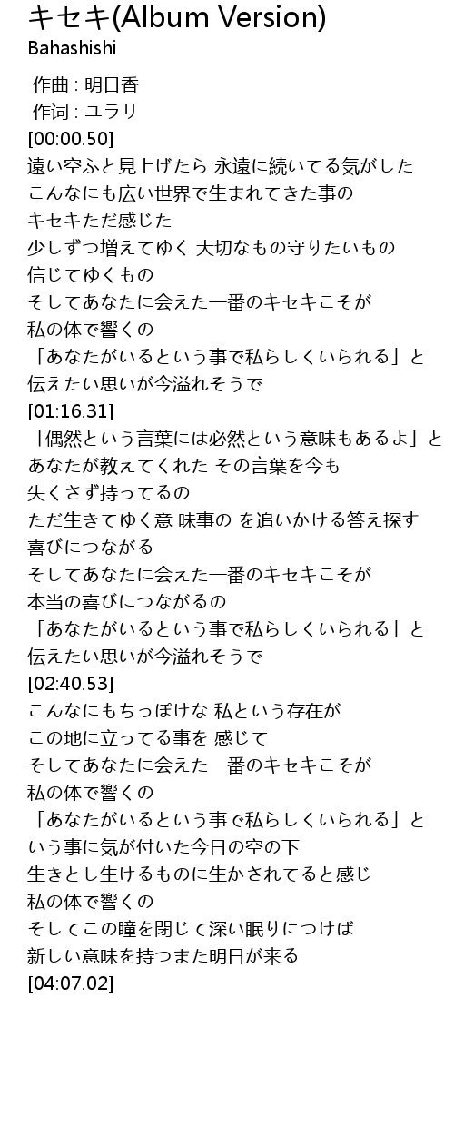 | [00:48.32] | そしてあなたに会えた一番のキセキこそが |